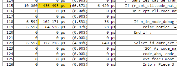 Le profiler permet de comprendre dans le détail l’exécution d’une fonction, avec des indicateurs précis, pour chaque ligne de code :
